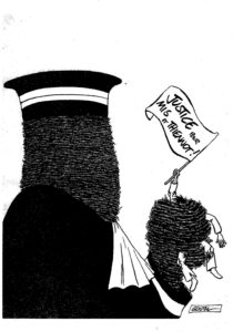 Je suis devenue dessinatrice de presse et je n’ai cessé d’utiliser mes compétences juridiques et mes dessins pour des personnes amies et/ou en difficulté, pour des causes dites « perdues » mais qui parfois sont finalement gagnées si on y met la persévérance, la foi et l’espoir nécessaires.